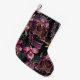 Embroidery human skull and pink orchid flowers pat small christmas stocking