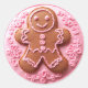 Embroidery Pink Christmas Gingerbread Man Classic Round Sticker