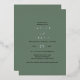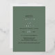 This elegant wedding invitation from the Emelia Collection is perfect for a woodsy destination wedding. The dark sage green backdrop features rustic yet simple typography, evoking a woodland mountain vibe. The couple's names, wedding date, and accent lines are beautifully highlighted in luxurious pressed silver foil for a refined and timeless touch.