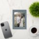 The minimalist design features simple yet stylish typography on slate blue-grey with an air of modern sophistication. Save the date is done in a luxurious pressed silver foil.