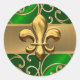 Emerald and Gold Filigree Swirls Fleur de Lis Classic Round Sticker