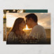 This elegant gold heart script photo save the date card features your photo and a script save the date above your names, date and venue. The reverse features an additional photo, message, and wedding website QR code on an emerald green background. Designed by Thisisnotme©