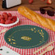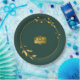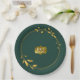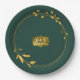 Simple gold leafy wreath and faux gold glitter badge on deep Emerald green. Personalise the initials and wedding date in text on the badge.