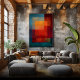 A striking abstract color field artwork featuring luminous emerald green, aurora teal and deep indigo layered in monumental translucent rectangles. The atmospheric pigments create a soft internal glow and a calm meditative presence. Ideal modern wall art for minimalist interiors, contemporary homes, studios and design lovers who appreciate elegant abstract compositions and vibrant color harmony.