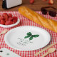 Celebrate love with this minimalist bridal shower paper plates featuring the phrase she’s tying the knot in delicate emerald green script calligraphy. An elegant emerald bow illustration adds a graceful touch, symbolizing the moment she’s about to begin. The rest of the text is set in sleek, modern typography, creating a clean and sophisticated layout.