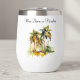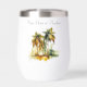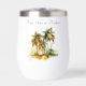 Keep your wine perfectly chilled (or warm!) with a vibrant touch of tropical serenity with this customisable thermal wine tumbler, showcasing the captivating "Emerald Canopy" watercolor design. Lush green palm trees stand tall, their fronds forming a rich, emerald-toned canopy, rendered with fluid artistry and subtle splatters for a dynamic feel. Perfect for picnics, beach trips, or enjoying a quiet moment, you can personalise it with text like "Island Sips," "My Happy Hour," or "Wine Down in Paradise."