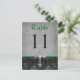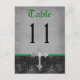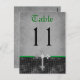 This emerald green, black, and grey Celtic cross table number postcard matches the wedding invitation shown below.