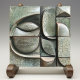 This masterfully crafted ceramic tile is a testament to abstract artistry, featuring an assortment of geometric and biomorphic shapes that create a mysterious yet harmonious tableau. The colour palette is rich with verdant hues, including emerald green, forest moss, and mint, complemented by deep espresso outlines that enhance the visual depth of each segment. The surface is adorned with a network of fine crackles, mimicking the delicate veining of leaves, which contributes to the naturalistic allure of the piece. A subtle interplay of shadow and light is achieved through the crackled glaze, giving life to the colours beneath, ranging from alabaster white to warm sepia tones at the edges. Ideal for those who appreciate the beauty of natural imperfections and the sophistication of modern design, this tile will elevate any room with its unique character and earth-inspired elegance.
