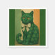 A poised emerald cat adorned with subtle clover motifs, its golden gaze calm, enigmatic, and quietly commanding, finished with a delicate bow crafted from vintage sheet music.