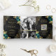 Emerald Floral Gold Lace QR Code Black Wedding Tri-Fold Invitation