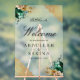 Amaze your guests with this elegant islamic wedding welcome sign featuring beautiful emerald green flowers and intricate lace with modern typography.