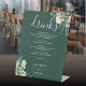 Emerald Floral Greenery Wedding Drinks Menu Pedestal Sign