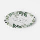 Emerald forest design on party plates, with monogram or names detail. A beautiful hunters green leafy rustic wedding design with a botanical theme. The classic text creates a formal, yet rustic suite, perfect for a summer wedding. Dark forest green reverse, or sage green option, or choose your own complimentary colour. Full suite available here https://www.zazzle.com/collections/green_foliage_botanicals-119824441720635362