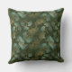 A refined seamless botanical pattern throw pillow featuring elegant ginkgo leaves illustrated in fine gold line art with soft teal accents, set against a deep emerald green background. This design blends timeless botanical beauty with a rich, modern color palette, creating a luxurious and sophisticated aesthetic.