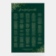 This beautiful seating chart features an elegant design with delicate golden curls and swirls in the corners on a deep emerald green coloured background. The title is written in fancy script calligraphy and reads "please find your table." There is room for up to 300 names in alphabetical order with the names of the happy couple and wedding date at the bottom. Wonderful way to add style and class to your wedding reception while making it easy for your guests to find their seats.