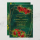 Emerald Gold Geometric Red Florals Wedding Shower Invitation