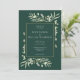 Featuring delicate watercolor greenery leaves and a gold frame on an emerald green background, this chic botanical wedding invitation can be personalised with your special wedding day information. Designed by Thisisnotme©