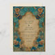 An opulent Islamic wedding design featuring a teal and gold arched frame inspired by mosque architecture and Persian artistry. With intricate floral motifs and geometric symmetry, this invitation exudes elegance, spirituality, and timeless cultural refinement — ideal for a luxurious Islamic wedding.