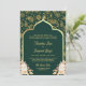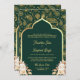 Emerald Gold Paisley Floral QR Code Indian Wedding Invitation