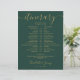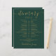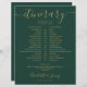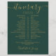 This stylish emerald green and gold wedding itinerary schedule-timeline can be personalised with your wedding details in chic lettering. Designed by Thisisnotme©