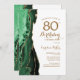 Emerald green and gold agate 80th birthday party invitation. Elegant modern design featuring watercolor agate marble geode background, faux glitter gold and typography script font. Trendy invite card perfect for a stylish women's bday celebration. Printed Zazzle invitations or instant download digital printable template.