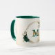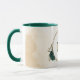 Beautiful coffee mug featuring emerald green and beige gold flowers with green leaves .