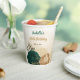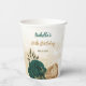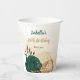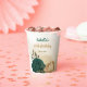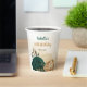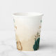 Beautiful fall paper cup featuring emerald green and beige gold flowers with green leaves .