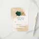 Beautiful wedding response card RSVP featuring emerald green and beige gold flowers with green leaves .