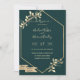 Deep Emerald Green and sparkling champagne beige combined with geometric frame and foliage creates a modern and unique, yet romantic invitation to your nuptials. Solid reverse.