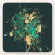 Emerald Green and Gold abstract Square Paper Coaster
