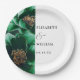 Emerald Green And Gold Elegant Floral Wedding Paper Plate