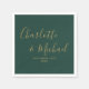Emerald green and gold elegant signature wedding napkins featuring signature style names, these modern napkins can be personalised with your names and special date. Designed by Thisisnotme©