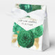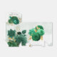 Design features a printed coloured with floral element in shades of emerald green over gold leaves and light green watercolor textures and peony blooms. Great for your wedding celebrations!