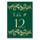 Add an chic touch to your wedding reception tables with these elegant table number cards done in an emerald green background, with gold tone flourishes, on the top and bottom of the card. Personalise the golden yellow text for each table at your reception.