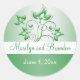 This emerald green and white wedding sticker/envelope seal matches the invitation and other items shown below.