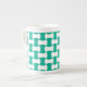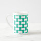 A stylish Bone China Mug, with a geometric pattern in trending Emerald Green and white.