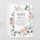 Dusty Pink, Dusty Rose, Emerald Green, Sage Green Floral Roses and Eucalyptus Botanical Greenery Watercolor Spring or Summer Baby Shower Invitations - includes beautiful and elegant script typography with modern botanical flowers and greenery for the special Mother to Be celebration for a Baby Boy or Baby Girl new arrival.