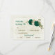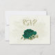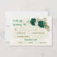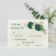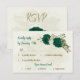 Beautiful romantic wedding response card featuring emerald green and beige flowers and some leaves .