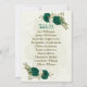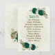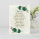 Beautiful romantic seating chart card featuring emerald green and beige flowers and some leaves .