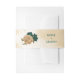 Beautiful fall wedding invitation belly band featuring emerald green and beige gold flowers with green leaves .