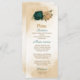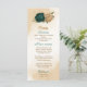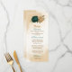 Beautiful fall wedding menu card featuring emerald green and beige gold flowers with green leaves .