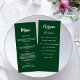 Program and menu card. Personalise and add your name, date and the menu. Emerald green coloured background, white text.
