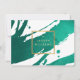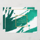 Dark, emerald green paint brushstrokes create an abstract backdrop on this customisable gift certificate. Your name or business name is displayed in a faux gold box on the front for a modern aesthetic. Art and design © 1201AM Design Studio | www.1201am.com