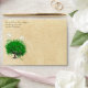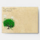 Emerald Green Heart Leaf Tree with Two Whimsical Doves Flying are the perfect love birds for your wedding day. On a Rustic Faux Burnt Parchment Printed Texture Pattern Envelope