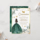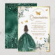 Emerald Green Dress Butterfly Gold Quinceanera Invitation
