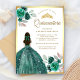 Emerald Green Dress Floral Gold Quinceanera Invitation