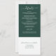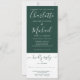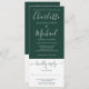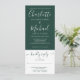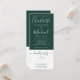 An all in one wedding invitation featuring modern signature script names and elegant typography on an emerald green background. The invitation includes an RSVP card that can be cut off and guest information details. Designed by Thisisnotme©