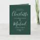 Emerald green signature script wedding program featuring chic modern typography. This stylish wedding program can be personalised with your special wedding day information. Designed by Thisisnotme©