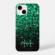 Emerald Green faux glitter sparkles bling Monogram iPhone Case
