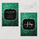 Emerald Green faux glitter sparkles Monogram Business Card